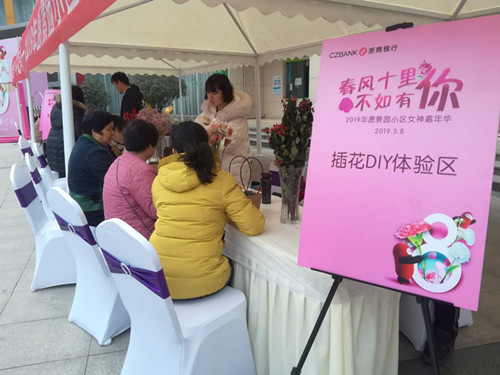 3月8日下午,城投物業(yè)愿景園小區(qū)聯(lián)合浙商銀行開展“春風十里•不如有你”主題女神嘉年華活動,為業(yè)主送去節(jié)日祝福。